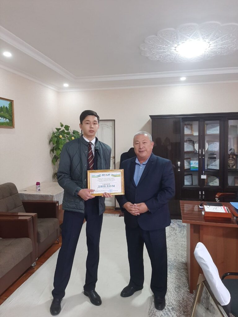 2024-жыл 22-ноябрь куни Өзбекстан Республикасы «Адолат» социал демократиялық партиясы тәрепинен «Конституция билимданы» көрик таңлаўының 3-басқыш Қарақалпақстан Республикасы басқышында Нөкис қаласы 1-санлы кәсип-өнер мектебиниң 2-курс 2-1 «Өрт өшириўши» топары оқыўшысы Емжаров Динмухаммед 1-орынды ийелеп 4-басқыш Ташкент қаласында болып өтетугын Өзбекстан Республикасы басқышына жоллама алды ҳәмде алдағы болып өтетуғын жарысларда әўмет тилеймиз.